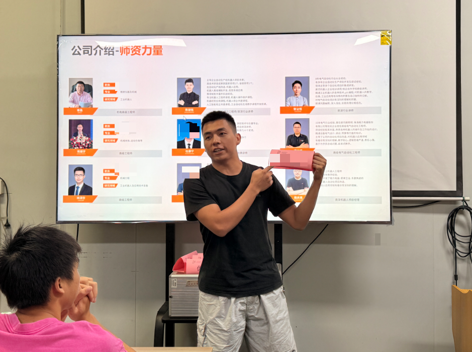 项目工程师潘老师压轴上台时,直接翻开了自己的 “教学账本”:“接下来4个月,我们从‘机器人应用’教起,直到你能独立完成‘倍速链产线调试等项目’。但有个规矩 ——不懂就问,哪怕是最基础的问题。”